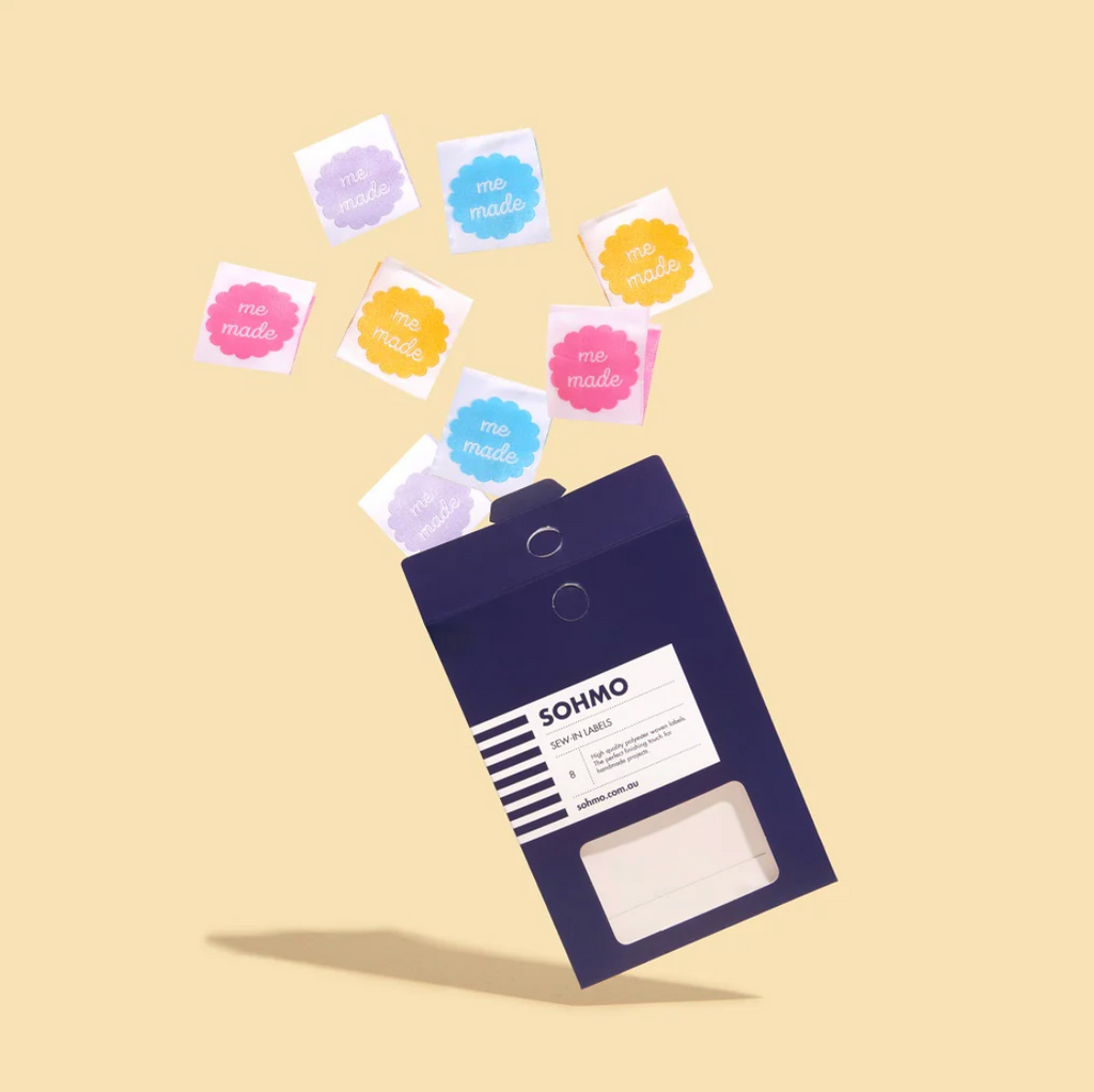 The perfect finishing touch to your handmade sewing project. SOHMO Sew-in labels are high quality woven polyester labels that look great in a side seam, collar seam, pocket seam… anywhere really!