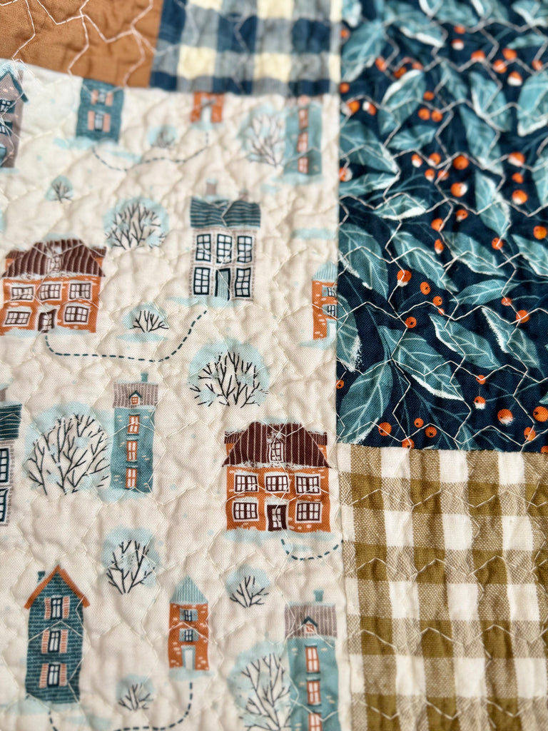 This Christmas Big Patch quilt was created using the Hopewood Home Big Patch Pattern as a guide only. The kit includes one Christmas tea towel plus fat quarters of Christmas prints as well as other prints and solids. Fat quarters were used to create this quilt so you will need to adjust, play and have fun with the pieces and blocks as you go. If you would also like to use the Hopewood Home pattern as a guide, you can purchase it here.